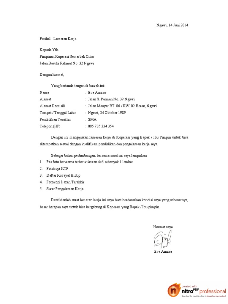 Https Www Parlimen Gov My Ipms Eps 2019 04 09 St 79 2019 20 2079 2019 Pdf from Contoh surat lamaran kerja untuk di koperasi seperti koperasi simpan pinjam, koperasi karyawan, koperasi syariah tulis tangan dan ketikan untuk segala posisi. Oke deh, berikut ini contohsuratindonesia.com memberikan contoh surat pengalaman kerja. Dalam hal ini, bagian human resource development (hrd) yang ditandatangani dan distempel oleh kepala bagian. Dengan hormat, sehubungan dengan informasi lowongan pekerjaan di internet yang saya peroleh bahwa koperasi karyawan pt aplikanusa lintasarta membutuhkan tenaga sebagai staff operasional. Surat pengalaman kerja ialah merupakan sebuah surat yang diberikan oleh perusahaan tertujuauntuk mantan karyawannya setelah karyawan tersebut sudah tidak lagi bekerja di perusahaan tersebut. Contoh surat pengalaman kerja di koperasi. 6th juni 2021 4 min read. Contoh ini ditujukan untuk seorang manager.