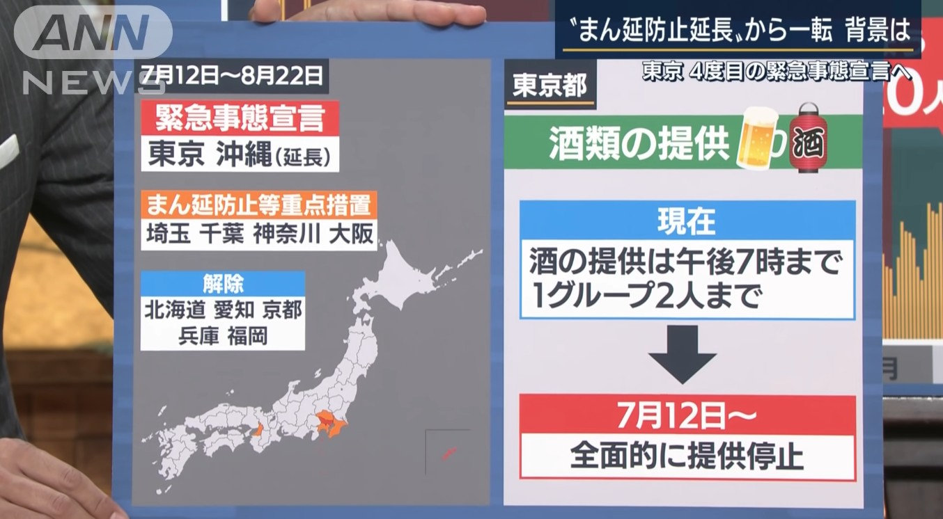 å®£è¨ é¦æ¸¯01 峿åé from cdn.hk01.com May 06, 2021 · 東京・京都・大阪・兵庫の4都府県に発令している緊急事態宣言。菅義偉首相は6日、この宣言の延長方針を表明した。官邸で記者団に「明日. Jan 07, 2021 · 最初の緊急事態宣言が発令された2020年4月7日の東京の新規感染者数は87人だった。あの頃、私たちは感染の恐怖におびえ、街は閑散として. 名無し 2021/06/16(水) 19:52:49.48 id:lp2erdptm 東京はえげつない増え方するやろな Apr 22, 2021 · 新型コロナウイルスの感染拡大に伴い、政府は21日、東京・大阪・兵庫・京都の4都府県に緊急事態宣言を発令する方針を固めた。具体的な措置は政府と自治体で検討中。飲食店での酒類提供を禁止する方向で調整がされている。 Apr 21, 2021 · 東京都緊急事態宣言期間4月29日~5月9日に決定!tdlなど大型商業施設休業要請へ!小池知事 東京都の小池百合子知事は、新型コロナウイルス対策の緊急事態宣言について、期間を大型連休中の4月25日~5月11日とし、デパートなどの東京ディズニーランド、シーなどの大型商業施設を休業要請の. May 14, 2021 · 東京都が新型コロナウイルス対策の「まん延防止等重点措置」適用を要請したことを受け、政府は4月9日、都などへの重点措置適用を決める。1月. Apr 20, 2021 · 東京都が、早ければ22日か23日に緊急事態宣言を要請する可能性が出てきた。今回の宣言では、カラオケ店や風俗店などへの「休業要請」も検討し. May 29, 2021 · 政府は5月28日、東京・大阪など9都道府県に発令中の緊急事態宣言および、群馬・石川・熊本を除く5県に適用しているまん延防止等重点措置を6月20日まで再延長すると決定。飲食店の酒類停止や時短要請などは継続される。